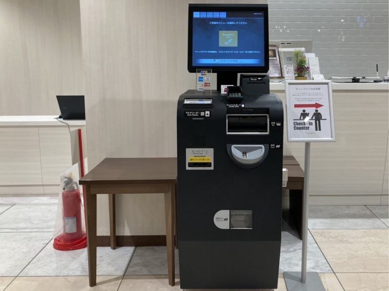 프런트 데스크 체크인은 여기에서.프런트 데스크 직원 웃는 얼굴로 맞이합니다!